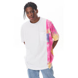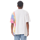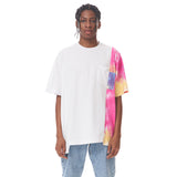 Short sleeve panelled cotton T-Shirt in white and purple-mix tie dye.