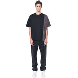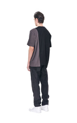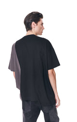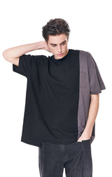 Short Sleeve T-Shirt in Black Patched with Contrasting Charcoal Panels
