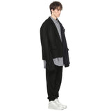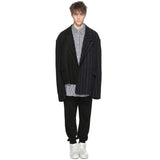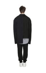 Long Sleeve Wool Blazer in Black/ Navy Pinstripe