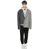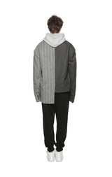 Long Sleeve Wool Blazer in Charcoal & Grey Pinstripe