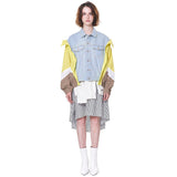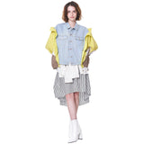 - Washed Blue Denim Front and Back Panelled with Yellow and Beige