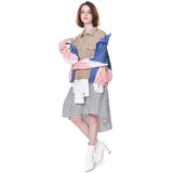 - 正面和背面均為駝色布,兩袖配以藍色和粉紅色布併合