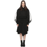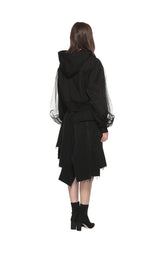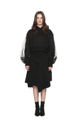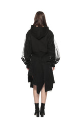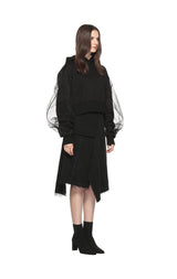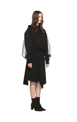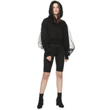 Long Sleeve Hoodie in Black with Sleeve Overlaid with Black Mesh
