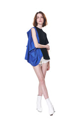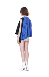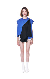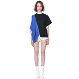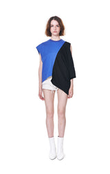 Short Sleeve T-shirt in Black with Laid-Acrossed Royal Blue Sleeveless T-shirt Panel
