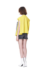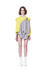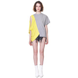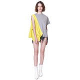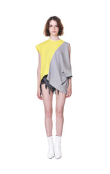 Short Sleeve T-shirt in Heather Grey with Laid-Acrossed Yellow Sleeveless T-shirt Panel