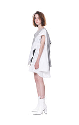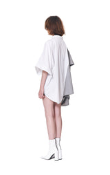 Half Sleeve Shirt in White with Laid-Acrossed Heather Grey Short Sleeve T-shirt Panel