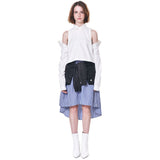 白色橄欖球領長袖襯衫配白色襯衫袖