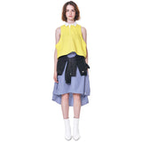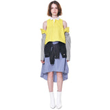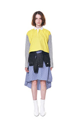 Long Sleeve Rugby Collared Shirt in Yellow Patched with Striped Shirt Sleeves
