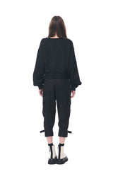 - Snap Button Placket in Purple Along Outer Sleeves