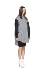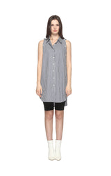 深藍間條長袖襯衫