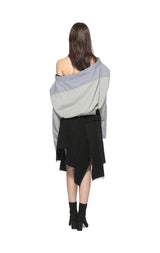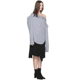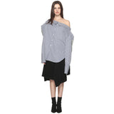 Long Sleeve Off-Shoulder Shirt in Blue Stripe