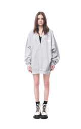 Long Sleeve Zip-Up Hoodie in Heather Grey