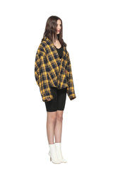 黃黑格子純棉長袖襯衫